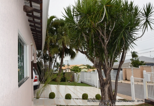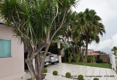 - Frente da casa com projeto de paisagismo, garagem para 4carros e portão eletrônico.