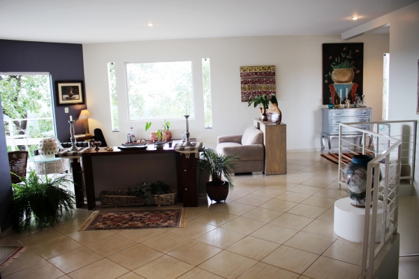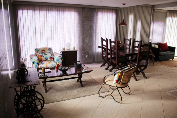 Hall de entrada, sala ampla, para 3 ambientes sendo sala de jantar, estar e bar e varanda/mirante com vista para o vale, super ventilada e iluminação natural sem a necessidade de acender as luzes durante o dia, janelas em blindex.