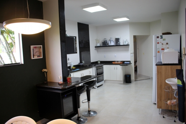 No 2º pavimento temos uma sala para dois ambientes com cozinha americana, espaço ideal para festas, com entrada exclusiva.
