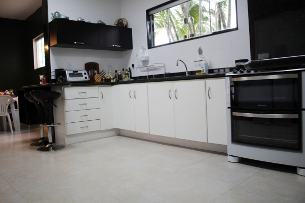 Cozinha rica em armários de 1ª qualidade e ainda temos em separado a despensa e louçaria repleta de armários.